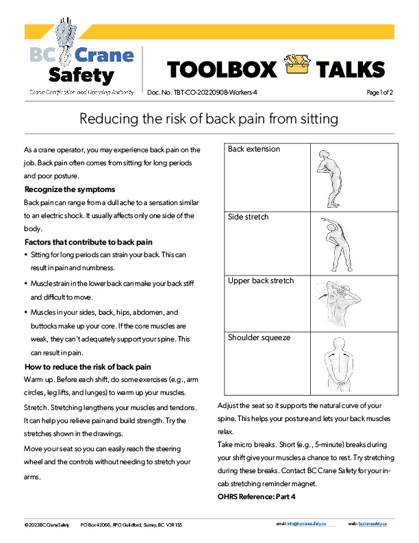 Toolbox Talks: Reducing the Risk of Back Pain from Sitting