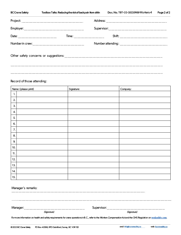 Download this Toolbox Talk to learn more about back pain factors and how to prevent it.